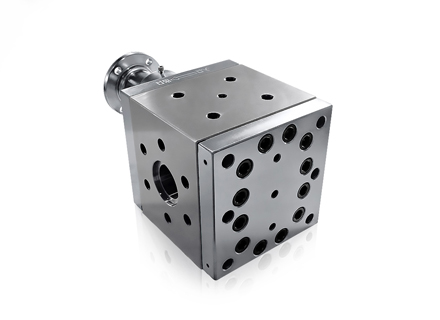 熔体泵属于容积式齿轮泵,采用一对外啮合的圆柱齿轮(直齿、斜齿、人字齿)相对转动来输送高黏度的流体。所有齿轮和配合面都经过精磨、并严格控制装配间隙来获得精确的流量。